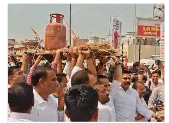 अजमेर शहर जिला कांग्रेस का भाजपा की गैस नीति के खिलाफ प्रदर्शन।