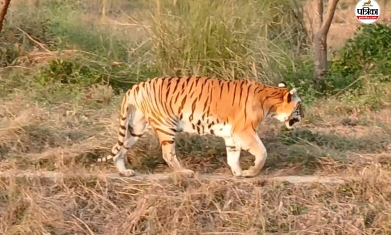 Input: सवाई माधोपुर। रणथंभौर का युवा बाघ आरबीटी-2407 लगातार जंगल से बाहर निकलकर गांवों की ओर रुख कर रहा है। मंगलवार देर रात यह बाघ रामसिंहपुरा गांव पहुंच गया, जिससे ग्रामीणों में हड़कंप मच गया। सूचना मिलते ही वन विभाग की टीम मौके पर पहुंची और लोगों को सुरक्षित दूरी पर हटाया।