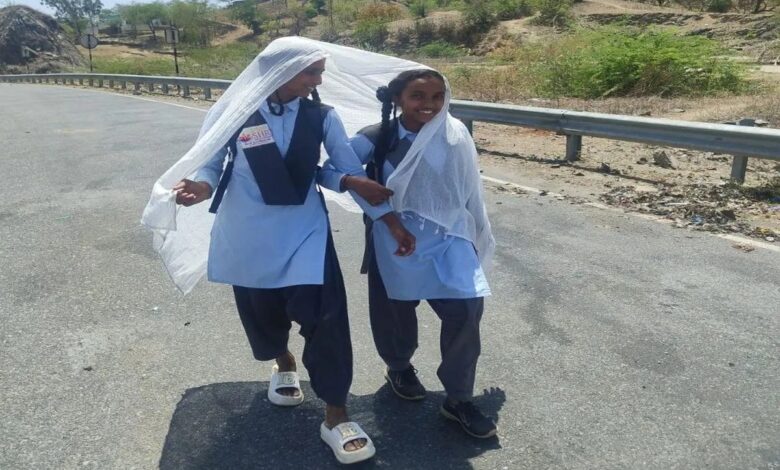 तपती सड़क, थका बचपन: 40 डिग्री में 3 किमी पैदल घर लौटती बच्चियां