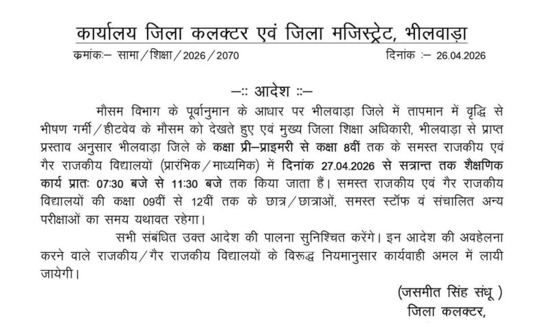 Input: भीषण गर्मी और लू के थपेड़ों के बीच झुलस रहे नौनिहालों और उनके अभिभावकों को आखिरकार बड़ी राहत मिली है। राजस्थान पत्रिका की ओर से लगातार दो दिन तक इस मुद्दे को प्रमुखता से उठाए जाने के बाद जिला प्रशासन को मासूम बच्चों के आगे झुकना पड़ा। रविवार को अवकाश होने के बावजूद दोपहर 12 बजे बाद जिला कलक्टर जसमीत सिंह संधू और मुख्य जिला शिक्षा अधिकारी अरुणा गारू को स्कूलों का समय बदलने के आदेश जारी करने पड़े। अब जिले के सभी सरकारी और गैर-सरकारी स्कूलों में पहली से आठवीं तक की कक्षाएं सोमवार से सुबह 7:30 बजे से 11:30 बजे तक ही लगेंगी। [/gआधार पर एक पूरी तरह से मानव द्वारा लिखी गई जैसी प्रोफेशनल न्यूज़ रिपोर्ट तैयार करें। निर्देश: